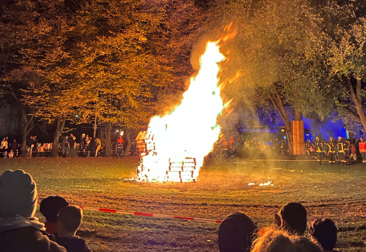 Dies gelang der kleinen Musikgruppe auf dem langen Zug außerordentlich gut, sodass die Mitlaufenden auf dem gut gesäumten Zugweg mitsingen und damit alle Teinehmenden singend und Laterne schwenkend das Leben und Wirken des Heiligen Martin feiern konnten. Zurück an der Schule wurde das große Martinsfeuer entfacht und ein letztes Sankt Martin erklang. Getränke und Weckmänner warteten als Belohnung und Stärkung, bevor die Instrumente wieder verpackt und der Heimweg angetreten wurde. Danke an alle Musikanten und an Frau Hanfeld vom Förderverein der Robert-Koch-Grundschule.