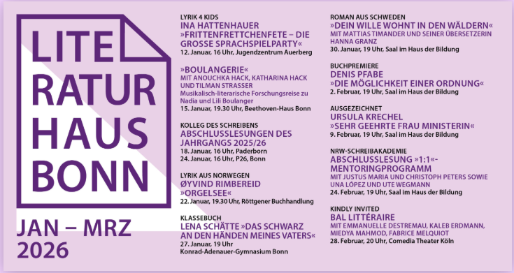 Zum 5. Mal wird ein Oberstufenkurs des Konrad-Adenauer-Gymnasiums am Dienstag, dem 27. Januar, in unserer Aula die Bühne bereiten für eine literarische Lesung eines bereits auf nationaler Ebene erfolgreichen literarischen Nachwuchstalentes: Lena Schätte, die es im letzten Jahr mit Ihrem neuen Roman „Das Schwarz an den Händen meines Vaters“ auf die Longlist des Deutschen Buchpreises geschafft hat, ist zu Gast bei unserem Deutsch-Leistungskurs in der Q1! Möglich ist diese Reihe durch unsere Kooperation mit dem Literaturhaus Bonn.