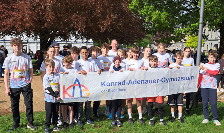 Partnerschule des Volleyballsports – der Name ist Programm. So meldete das Konrad-Adenauer-Gymnasium dieses Jahr erstmals ein Lehrerteam für das Turnier des Westdeutschen Volleyballverbands. Nach ersten Trainingseinheiten war unser Team heiß auf den Match-day. Am Freitagnachmittag waren wir zu Gast in Beuel. Insgesamt hatte jede Mannschaft vier Spiele im Pool der Bonner Teams. Mit dabei waren neben dem Gastgeber Kardinal-Frings-Gymnasium, das Amos-Comenius-Gymnasium, die Gesamtschule Weilerswist und das Ville Gymnasium Erftstadt. Die Spiele waren knapp und hart umkämpft. Unser Team – eine bunte Mischung aus verschiedenen Sportarten – präsentierte sich gut und das Ziel für nächstes Jahr ist klar: wir möchten uns für die nächste Runde qualifizieren😉