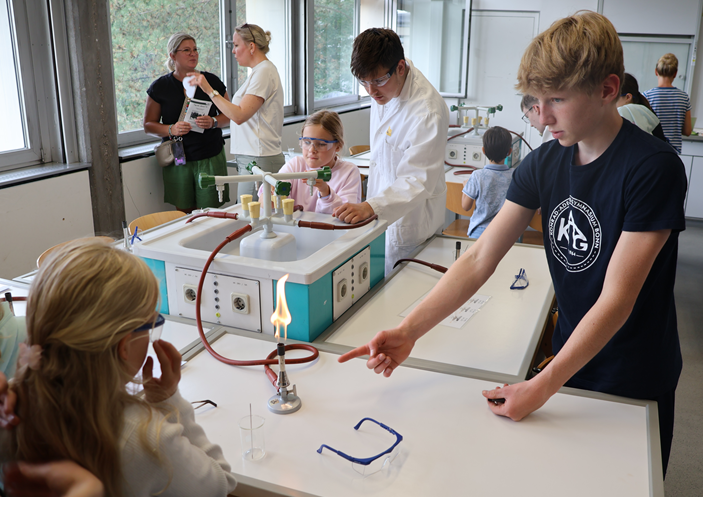 Mit Foto-Impressionen vom Tag der offenen Tür möchte sich die Homepage-Redaktion bei allen Schülerinnen, Schülern, Eltern und Lehrkräften bedanken, die unseren Tag der offenen Tür so mitgestaltet haben, dass unsere neugierigen Besucherinnen und Besucher – egal ob ViertklässlerInnen oder ihre Eltern – das Konrad-Adenauer-Gymnasium in seiner Vielfalt, in seiner entspannten Normalität, aber auch in seinen besonderen Eigenschaften erleben konnten: im Vorführunterricht, beim Mitmachen in den Fachräumen und bei den Präsentationen zum Ganztagsangebot, beim Spielen auf dem Schulhof, beim musikalischen Aulaprogramm oder im Gespräch mit Eltern und Lehrkräften während der Rundgänge, am Buffet im Foyer und an den Infoständen. Wir freuen uns auf ein Wiedersehen!