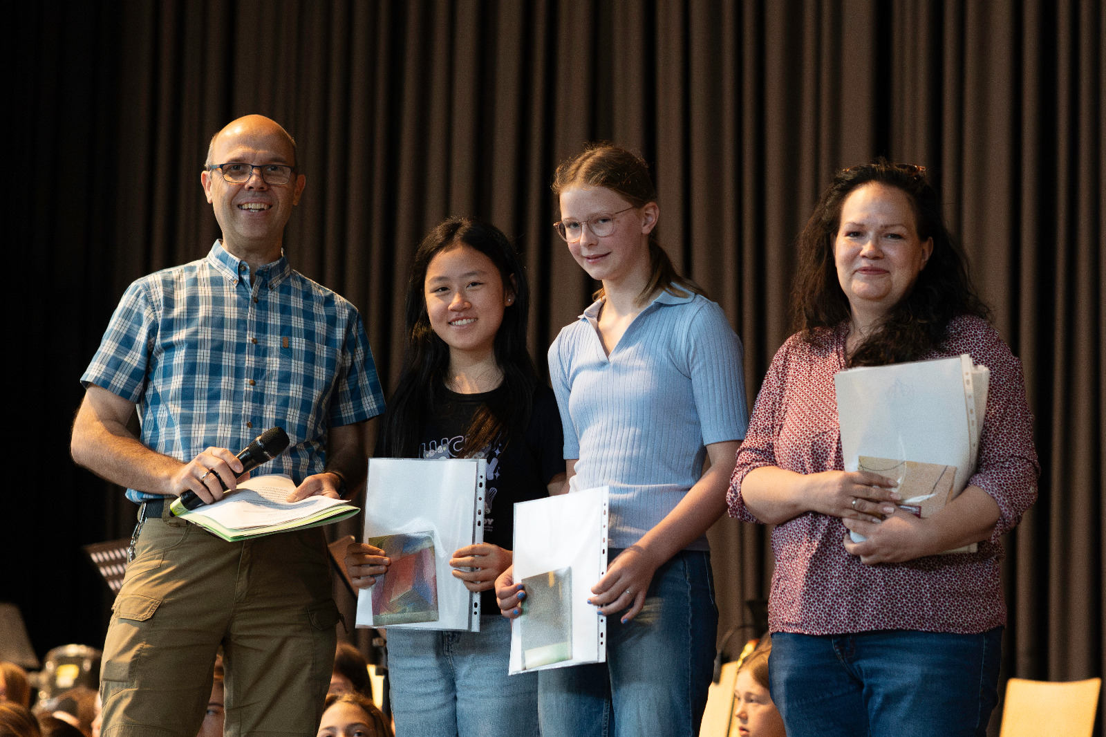 Schon der Empfang unserer neuen Fünftklässlerinnen und Fünftklässler durch Pfarrer Tobias Mölleken in der Johannes-Kirchengemeinde am Mittwoch, dem 27. August, war von Freundlichkeit und augenzwinkerndem Humor bestimmt, als er die Anwesenden mit Gedanken zu einem Psalm über ein Geschenk des Himmels ansprach. Die Unerlässlichkeit eines gelingenden Miteinanders vertieften dann die Schülerinnen und Schüler der Religionskurse von Frau Birken und Herrn Roth, indem sie das berühmte Streitgespräch zwischen Auge, Mund, Hand und Fuß aus dem ersten Korintherbrief des Paulus darboten. Nach dem zügigen Ortswechsel in die Aula des Konrad-Adenauer-Gymnasiums wurden unsere Neuzugänge und ihre Familien ebenso zügig – aber diesmal musikalisch – kanonisiert: der Chor der 6c war nicht zu bremsen und erntete mit dem Legewagenkanon und dem Lied Unsre kleine Eisenbahn (letzteres inklusive Trillerpfeife!) viel Applaus. Den Gedanken des Heranreifens und des Neuanfangs vertiefte dann Herr Trimpop in seiner Begrüßungsrede treffend anhand von Elke Bräunlings Erzählung Die Kastanien und der Wind, in der letzterer dafür sorgt, dass die schützende Hülle der Kastanien plötzlich aufspringt, sodass ein neuer Lebensabschnitt beginnt, man die Welt erblickt, neue Erfahrungen macht und Freundschaften schließt. Spätestens hiermit war der Ton gesetzt für das Willkommenheißen unserer drei neuen Sextanerklassen und ihrer Eltern in unserer Schulgemeinde. Die beherzte Präsentation von La Cinquantaine von Gabriel P. Marie mit Herrn Waasem am Piano und Nina Merziger an der Violine war die harmonische Abrundung einer herzlichen, gewitzten und traumhaft gut gelaunten Sextanereinschulung an einem strahlenden Spätsommertag.